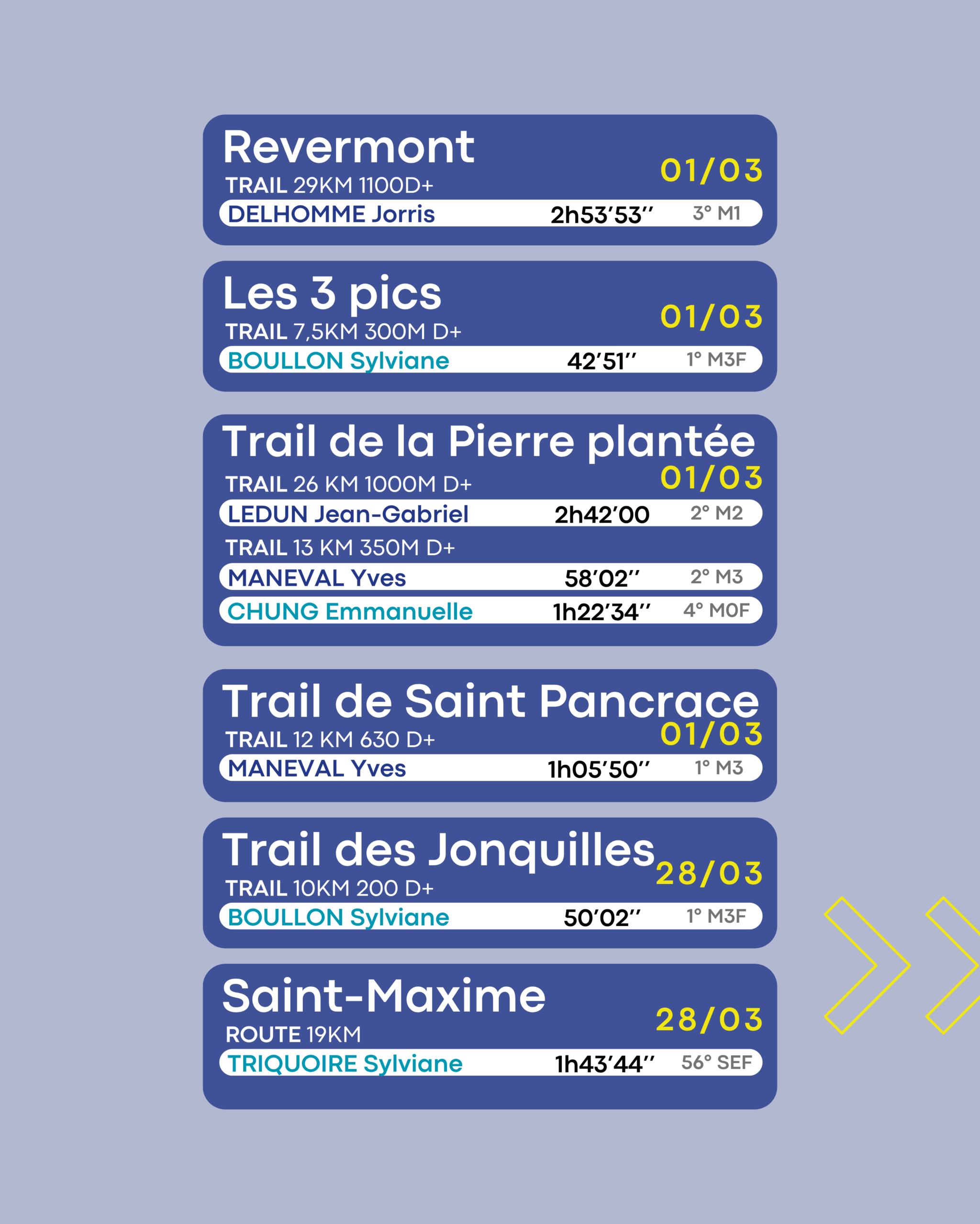 De nombreux trails, les derniers cross et de belles performances sur route, nos athlètes ont une nouvelle fois été présents sur tous les terrains